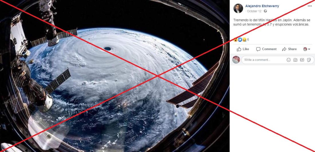 Una imagen tomada desde el espacio también ha circulado, tanto en Twitter (1, 2) como en Facebook (1, 2, 3), atribuida de manera errónea al paso del tifón Hagibis.