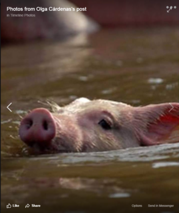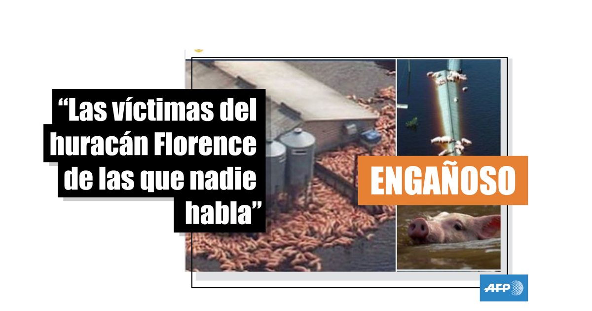 “Las víctimas del huracán Florence (Estados Unidos) de las que nadie habla”: ésta es la leyenda usada para llamar la atención sobre imágenes compartidas miles de veces en español y otros idiomas en Facebook en pocos días. Aunque la numerosa población de cerdos en ese estado se encuentra en peligro a causa de las inundaciones provocadas por Florence, ninguna de estas fotos publicadas en Facebook y en Twitter fueron tomadas este año.