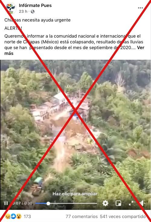 “Queremos informar a la comunidad nacional e internacional que el norte de Chiapas (México) está colapsando, resultado de las lluvias que se han presentado desde el mes de septiembre de 2020”, dice una publicación en Facebook que difunde una grabación de un deslave barriendo a su paso casas y árboles, mientras algunas personas corren y a otras se las oye gritar, ubicando la escena en “la comunidad Alta Gracia” del Municipio del Bosque.