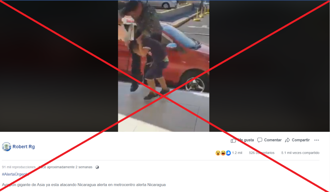 “Avispón gigante de Asia ya esta atacando Nicaragua alerta en metrocentro alerta Nicaragua (sic)”, señala una publicación en Facebook compartida más de 5.100 veces y que circula desde el 8 de mayo pasado.