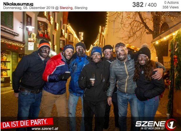 En una página web austríaca, Szene1, varias fotos con fecha del 5 de diciembre de 2019 muestran que los participantes del evento llevan el rostro ennegrecido, como también refleja un artículo del medio digital italiano Open que verifica la información.