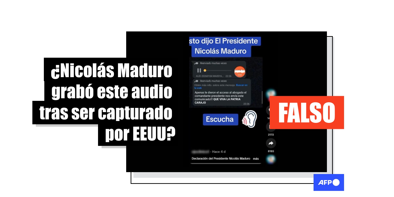 Copyright © AFP 2017-2025. Todos los derechos reservados. Los usuarios pueden acceder a este sitio, consultarlo y utilizar las opciones propuestas para compartir su contenido con fines personales. Cualquier otro uso, especialmente la reproducción, la comunicación al público o la distribución del contenido de este sitio, en su totalidad o en parte, para cualquier otro fin y/o por otros medios, sin un acuerdo específico firmado con la AFP, está estrictamente prohibido. Los elementos analizados en cada verificación se presentan o se enlazan en tanto en cuanto son necesarios para la correcta comprensión de la verificación en cuestión. La AFP no cuenta con derechos sobre los autores ni sobre los propietarios del copyright de estos contenidos de terceras partes, y declina toda responsabilidad respecto a los mismos. AFP y su logo son marcas registradas.
