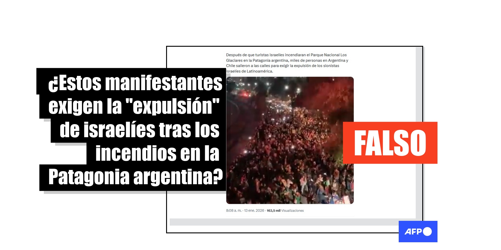 Video muestra una marcha por Gaza, no una protesta contra israelíes tras incendios en la Patagonia Publicado el 15 de enero de 2026 a las 19:51