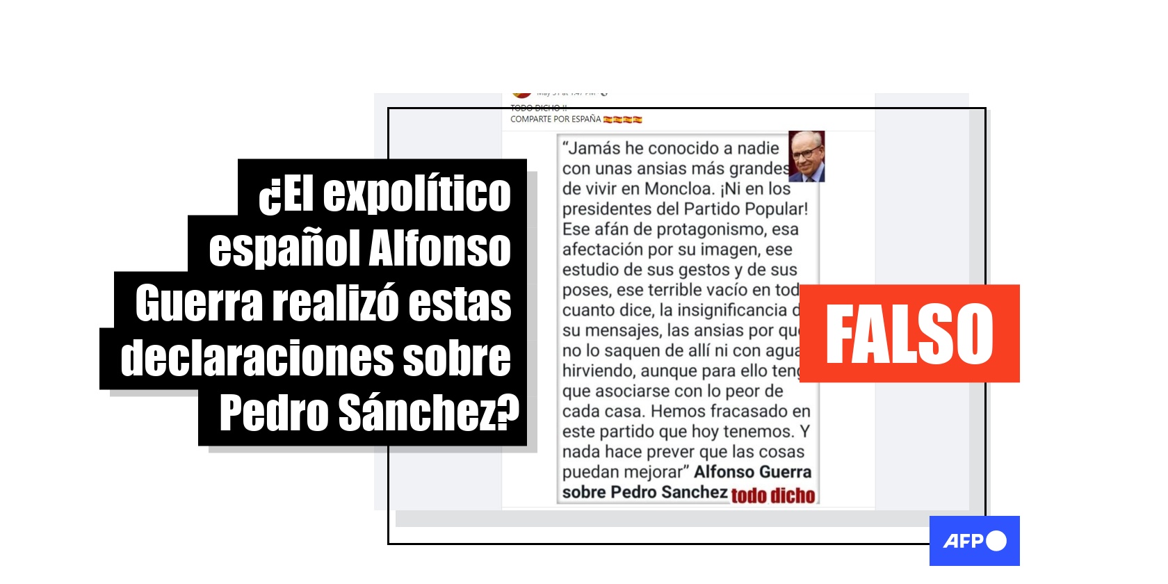 La entrevista al socialista Alfonso Guerra sobre el “ansia” por Moncloa de Pedro Sánchez es ficticia Publicado el 15 de enero de 2026 a las 19:57