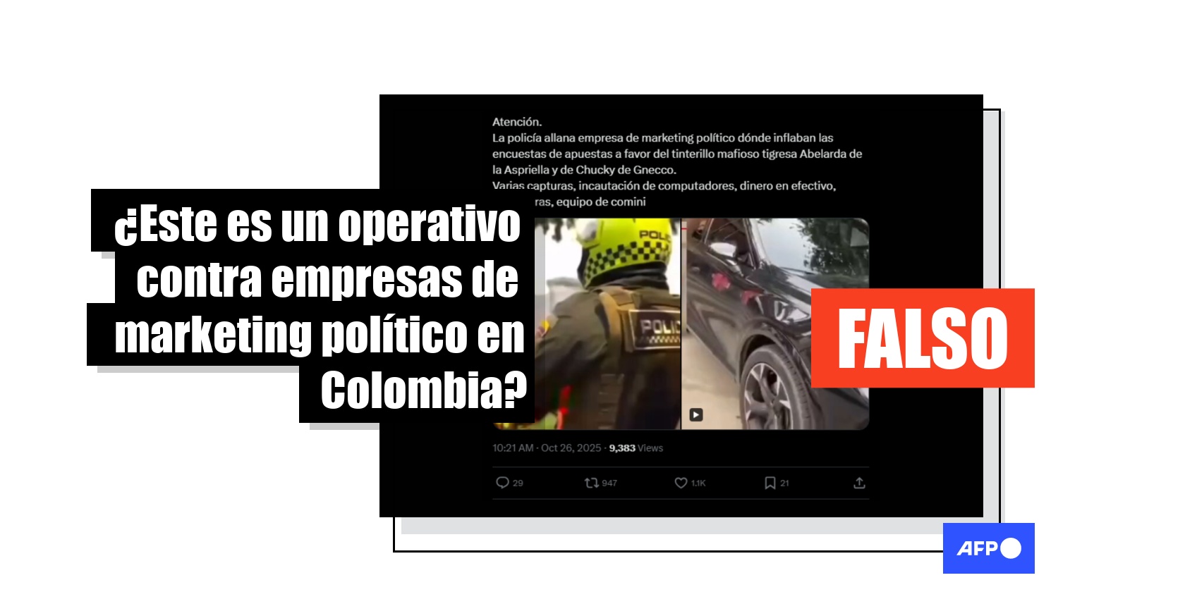Copyright © AFP 2017-2025. Todos los derechos reservados. Los usuarios pueden acceder a este sitio, consultarlo y utilizar las opciones propuestas para compartir su contenido con fines personales. Cualquier otro uso, especialmente la reproducción, la comunicación al público o la distribución del contenido de este sitio, en su totalidad o en parte, para cualquier otro fin y/o por otros medios, sin un acuerdo específico firmado con la AFP, está estrictamente prohibido. Los elementos analizados en cada verificación se presentan o se enlazan en tanto en cuanto son necesarios para la correcta comprensión de la verificación en cuestión. La AFP no cuenta con derechos sobre los autores ni sobre los propietarios del copyright de estos contenidos de terceras partes, y declina toda responsabilidad respecto a los mismos. AFP y su logo son marcas registradas.