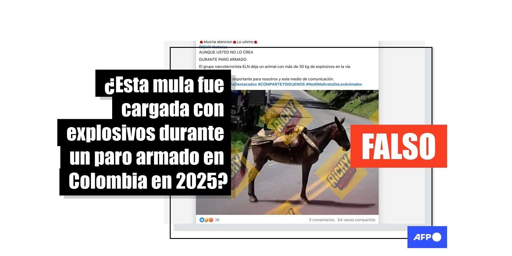 La foto de una mula en una ruta no es de un paro armado en Colombia en 2025; circula desde 2016 Publicado el 22 de diciembre de 2025 a las 22:01
