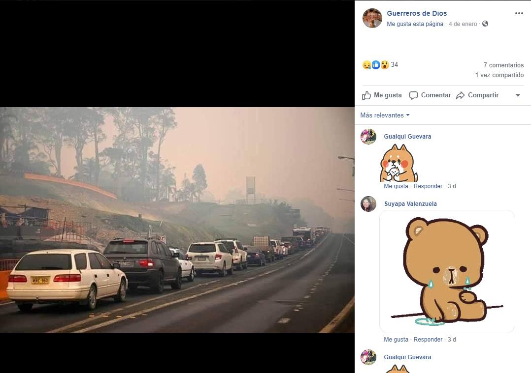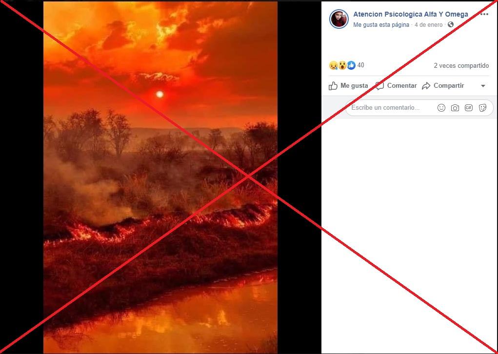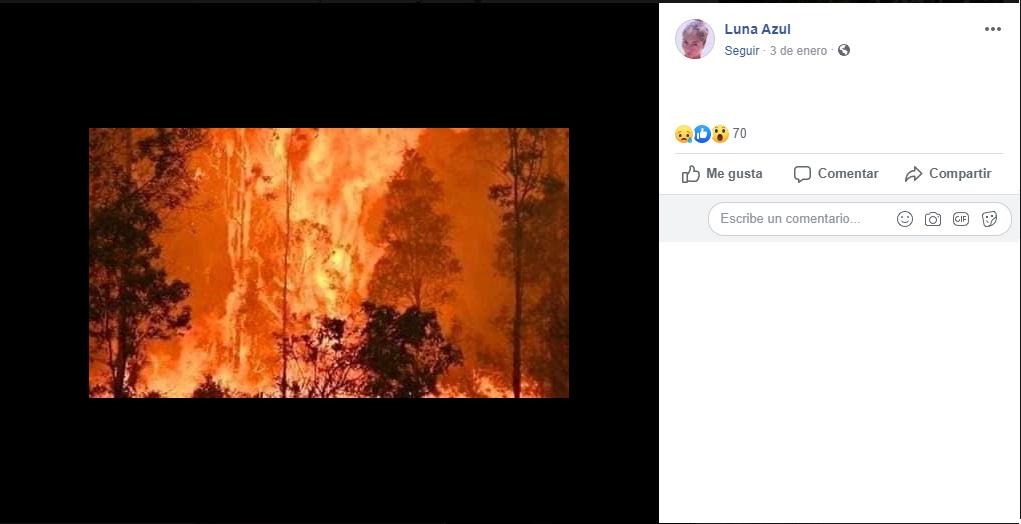 “Australia se está quemando a fuego lento desde hace varios días”, señalan tres publicaciones en Facebook (1, 2, 3, 4, 5, 6, 7, 8) con álbumes de fotos que pretenden ilustrar los sucesos que están haciendo estragos en ese país desde septiembre de 2019.
