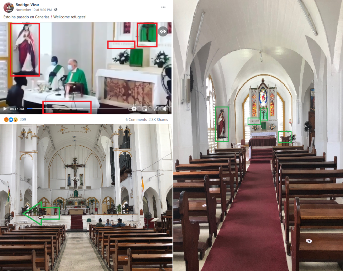 Mediante una búsqueda inversa de fotogramas clave del vídeo con la herramienta InVID, AFP Factual encontró que el suceso, que es real, no tuvo lugar en ninguna isla del archipiélago canario, sino en Georgetown, Guyana, concretamente en la Catedral de la Inmaculada Concepción, durante la misa del 7 de noviembre.