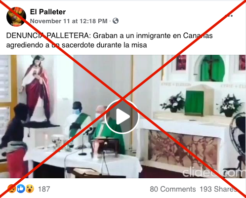 El vídeo compartido por los usuarios está acompañado en ocasiones por una voz en off que afirma: “Esto ha ocurrido en una parroquia de Canarias, España, mientras se estaba dando una misa”, y comenta, además, que es más fácil “mirar para otro lado (...) y decir que el tema de la inmigración ilegal descontrolada en Canarias, pues es un bulo”.
