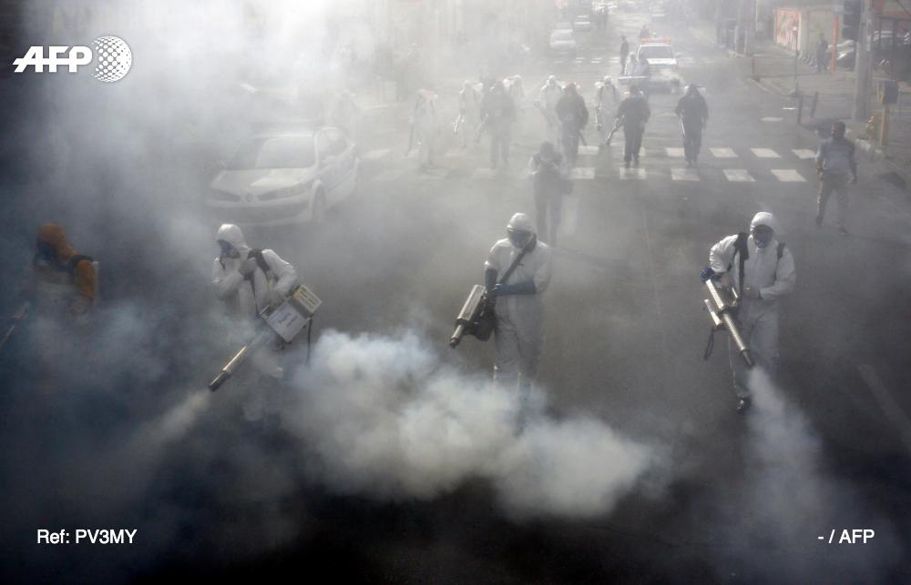 Bomberos iraníes desinfectan una calle de Teherán para frenar la propagación del nuevo coronavirus, el 13 de marzo de 2020