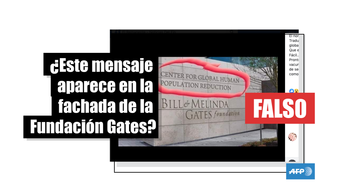 “Para los escépticos [...] El nombre de la fundación de Melina y Bill Gates [sic]. Traducido: Centro para la reducción de población global de seres humanos. Que es esto? Fácil.. eliminar personas mediante vacunas”, dice una publicación compartida en Facebook más de 1.600 veces (1, 2, 3, 4). El texto va acompañado de una fotografía que supuestamente muestra la fachada de la Fundación Bill & Melinda Gates. Sobre el nombre de la institución aparece la inscripción “Center for Human Population Reduction” (“Centro para la Reducción dela Población Humana Global”).