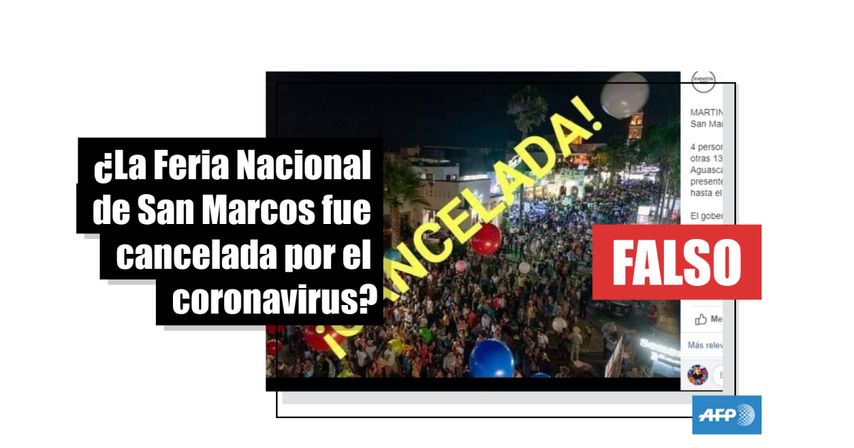 AFP Factual contactó vía Facebook a los organizadores de la Feria de San Marcos, quienes rechazaron la cancelación de este evento. “Esta información es falsa. Te recomendamos seguir las cuentas oficiales para recibir información verídica”, señalaron.