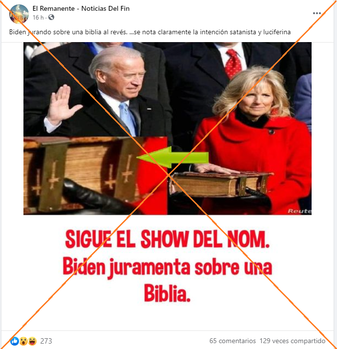 “Y que les parece la biblia donde juro Biden? Y que tal la decoración con las crucercitas?..”, indica una de las publicaciones en Facebook que comparten la imagen.