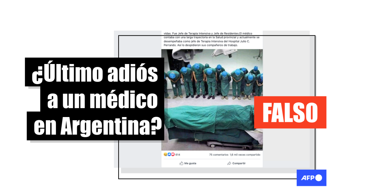“Así se va un grande, con todos sus pares rindiéndole tributo en silencio”, dice una publicación en Facebook que lamenta el fallecimiento del médico chaqueño Miguel Ángel Duré. “Así lo despidieron sus compañeros de trabajo”, afirma otra publicación. “Homenaje de sus pares”, dice una tercera entrada. En todos los casos se muestra una foto en la que puede verse a más de una docena de médicos haciendo una reverencia ante una camilla sobre la que yace un cuerpo cubierto.