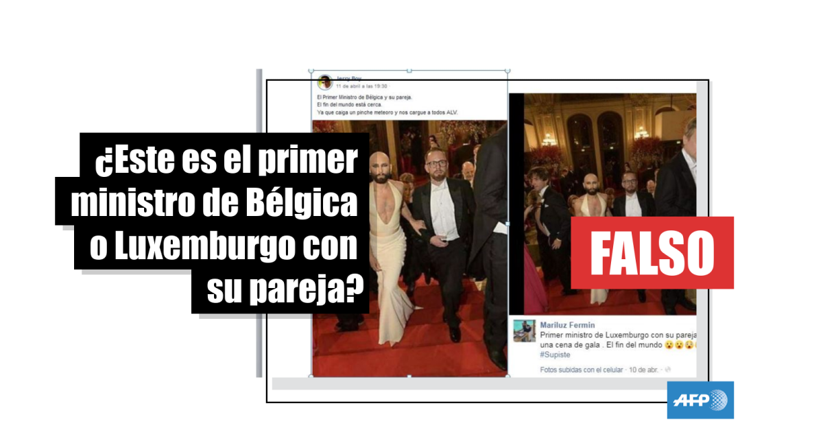 En conclusión, no se trata de una foto del primer ministro de Luxemburgo ni de Bélgica con su pareja, sino de la cantante austríaca Conchita Wurst junto a su representante en la Gala de la Ópera de Viena en febrero pasado.