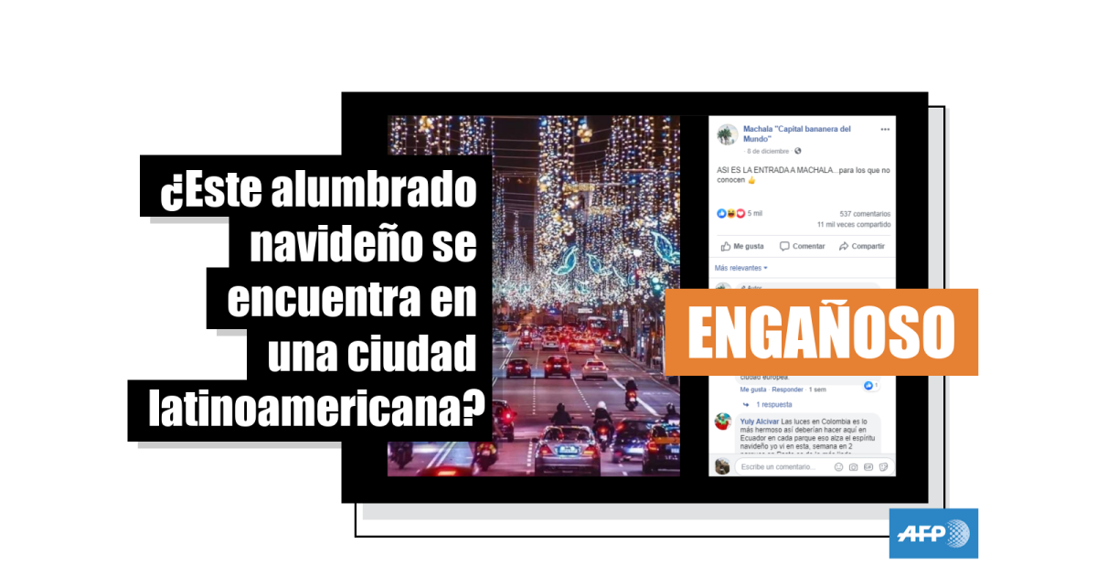 “Así luce la avenida Madero, centro de la ciudad de Morelia, Michoacán [en México]”, dice en Facebook uno de los usuarios que publica la instantánea, en un mensaje compartido más de 2.900 veces. “ASI ES LA ENTRADA A MACHALA [en Ecuador]...para los que no conocen”, señala otra publicación compartida al menos 11.000 veces. “Para los que no conocen manizales [en Colombia], esa es la avenida del centro”, aseguran en otra ocasión, un mensaje repetido con diferentes ciudades (1, 2, 3, 4, 5, 6, 7, 8).