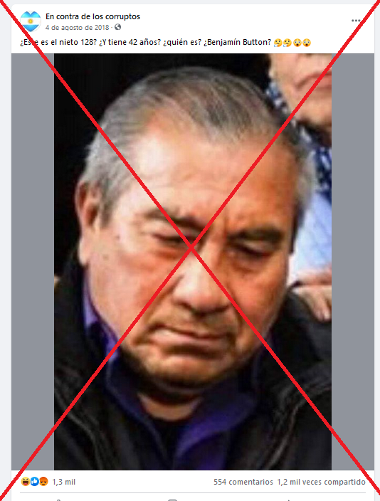 “Este de la Foto es el nieto 128 de 42 años para mi nos están tomando de boludos. Compartí y comenta si te parece lo mismo”, dice otra entrada, que incluye una imagen de la misma persona junto a Estela de Carlotto, presidenta de Abuelas de Plaza de Mayo.