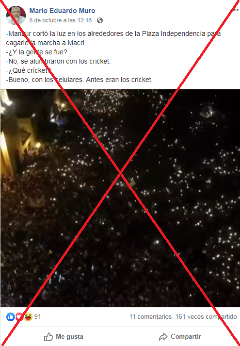 Martín Dzienczarski, periodista del diario La Gaceta que cubrió la concentración, dijo a Reverso que “las luces se apagaron y la gente comenzó a aplaudir y a echarle la culpa a Manzur” por ese corte. Y que a los pocos minutos “se restableció el servicio" en la zona.