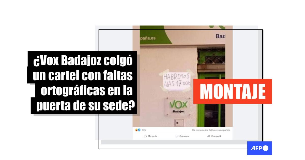 La imagen de la sede de Vox Badajoz con un cartel con errores ortográficos es un montaje