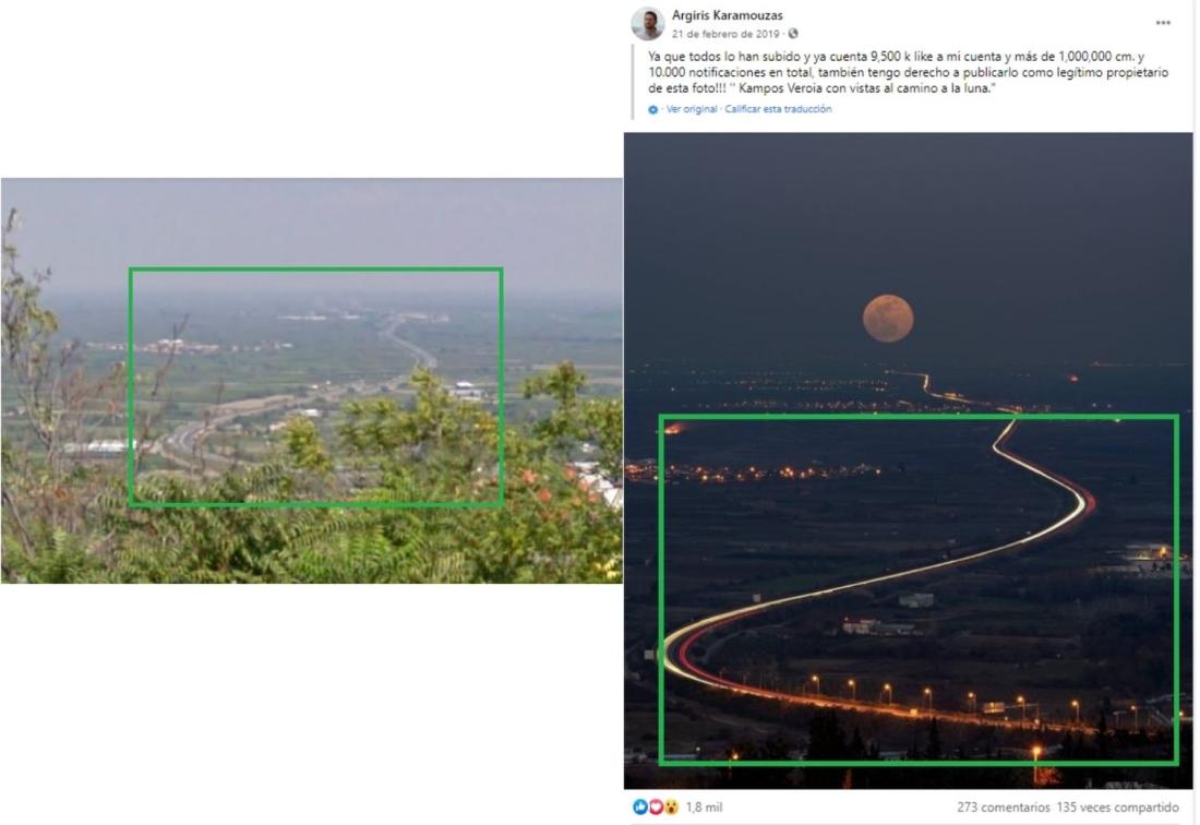 Poco días después, Karamouzas la publicó en su Facebook señalando: “Ya que todos la han subido [...], también tengo derecho a publicarla como legítimo propietario de esta foto!!! ' Kampos Veroia con vistas al camino a la luna".