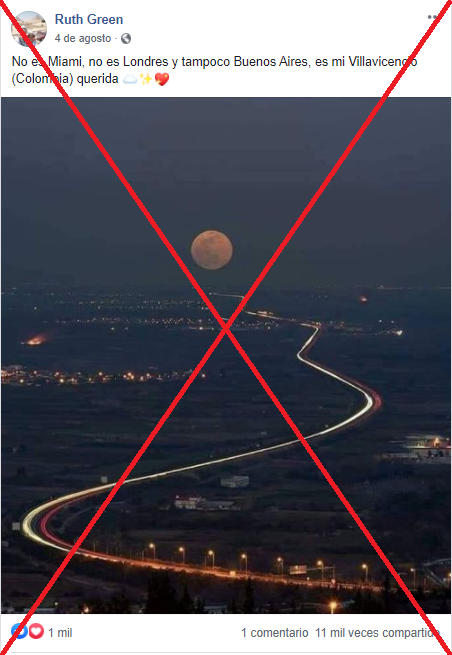 En suma, es falso que esta fotografía de un camino de luces bajo una luna llena fue tomada en Villavicencio, Colombia, como lo aseguran publicaciones en Facebook. En realidad, ocurrió en la ciudad griega de Veria.