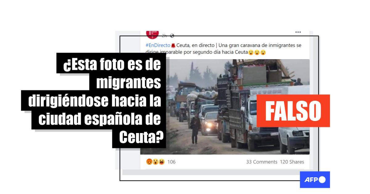 La imagen de una caravana no es de migrantes yendo a Ceuta, en España; son desplazados en Siria
