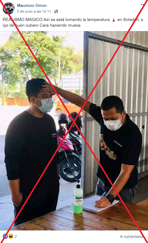 “REALISMO MAGICO:Así se está tomando la temperatura [...] en Soledad [Departamento de Atlántico] [sic]”, dice una de las publicaciones en Facebook.