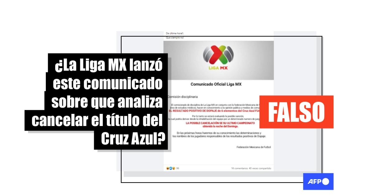 “De última hora!!. Que siempre no!”, dicen publicaciones en Facebook (1, 2) e Instagram (1) que comparten el supuesto comunicado de la Liga Mexicana de Futbol (Liga MX), según el cual seis jugadores del Cruz Azul dieron positivo a dopaje.