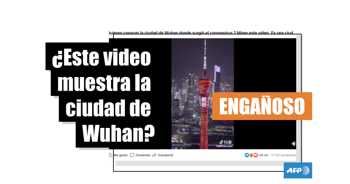 El video se ha compartido más de 342.000 veces en Facebook (1, 2, 3, 4, 5), Twitter (1, 2, 3) e Instagram. “Quieren conocer la ciudad de Wuhan donde surgió el coronavirus? Miren este vídeo. Es una ciudad impresionante”, dice una de las publicaciones. En la secuencia, que dura cerca de cuatro minutos, pueden verse tomas aéreas diurnas y nocturnas de la ciudad.