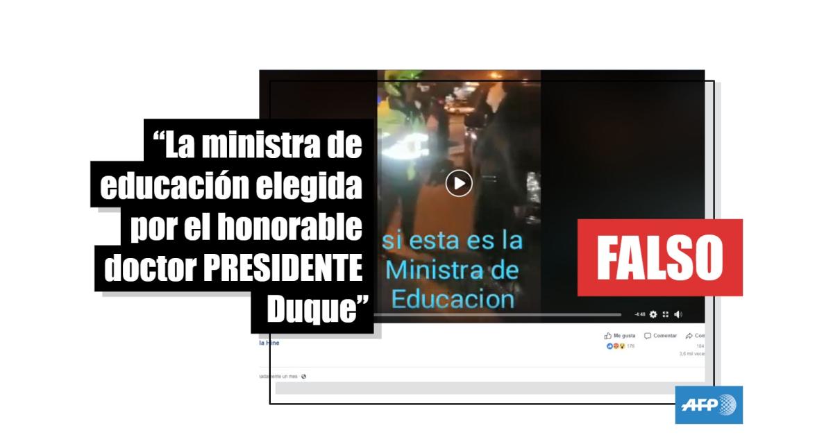 El material ha sido compartido miles (1) de veces en Facebook desde que fue publicado el pasado 20 de agosto. Según la leyenda, la mujer es “la ministra de educación elegida por el honorable doctor presidente Duque”.