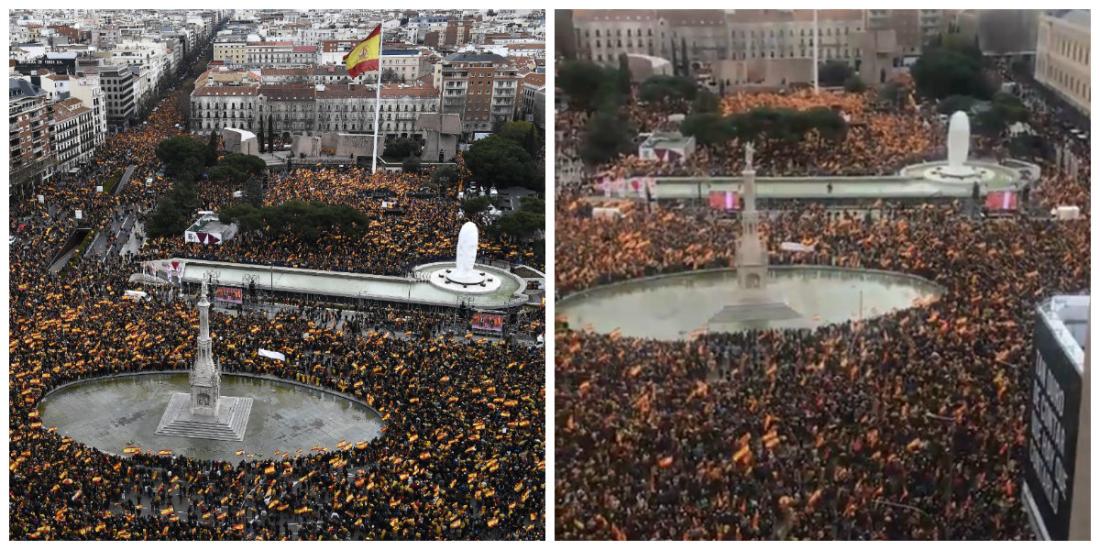 Una manifestación realmente ocurrió el 4 de enero de 2020 cerca del Congreso de los Diputados, también en el centro de Madrid pero a más de un kilómetro de la Plaza de Colón.