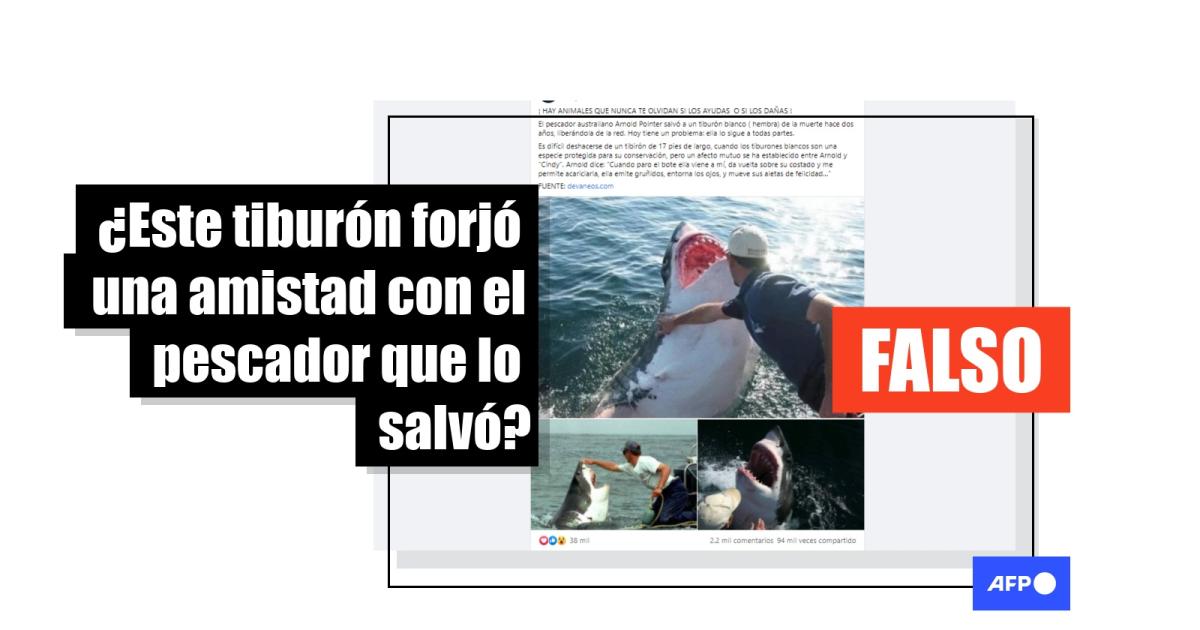 Scholl dijo a AFP Factual que reconoce las tres fotografías y descartó que mostraran la amistad entre un pescador y un tiburón, versión que “ha circulado por más de una década en redes sociales”.