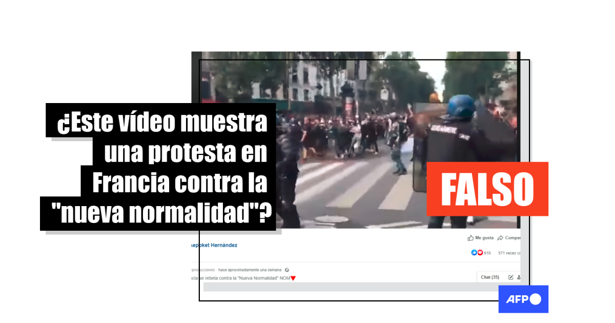 El vídeo, publicado por primera vez el 19 de julio, ha sido compartido más de 1.000 veces en Facebook (1) con diferentes duraciones. En él se ve cómo la policía retrocede ante los manifestantes y las publicaciones lo presentan con leyendas como “Francia se rebela contra la 'Nueva Normalidad' NOM”.