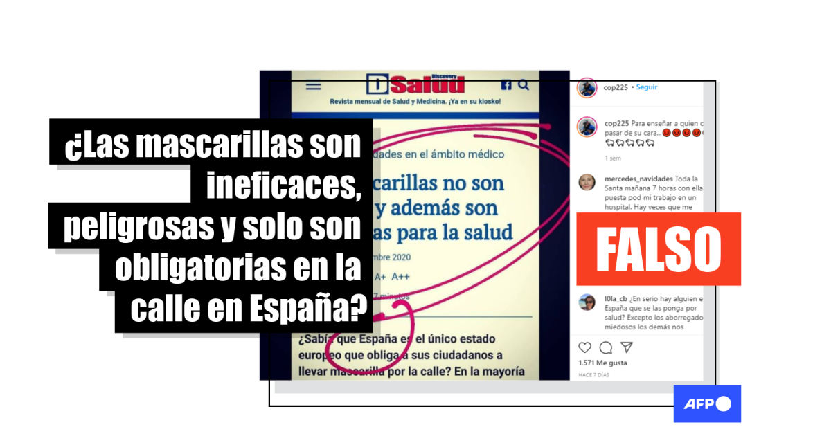 Las afirmaciones recogidas en la captura difundida, además, son falsas. La eficacia de las mascarillas ya ha sido objeto de polémicas anteriores, las cuales verificó AFP Factual (1, 2, 3).