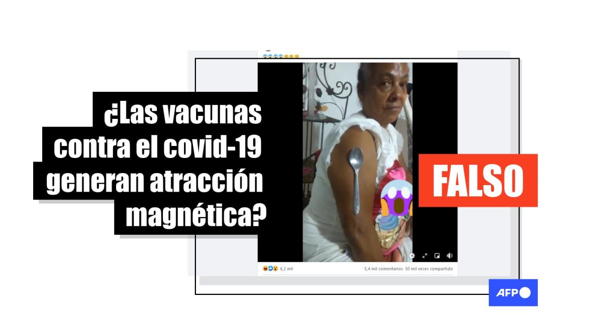 “Yo no sé si es verdad que es un chip, no sé qué diablos es pero hay algo raro en esa vacuna del diablo”, se oye decir a una mujer en un video publicado en Facebook, que muestra cómo una cuchara de metal se queda apoyada en el brazo de una persona que supuestamente ha recibido dos dosis de una vacuna contra el covid-19.