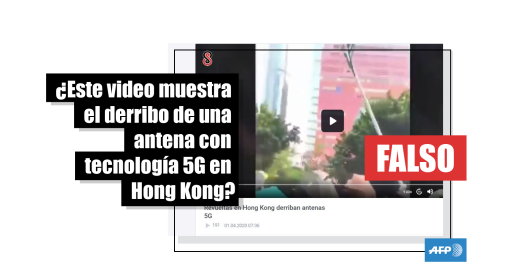 Imagen 5G Publicado el 30/04/2020 El video muestra el derrumbe de una torre de reconocimiento facial en Hong Kong, no una antena de 5G