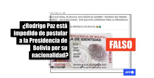 Imagen Elecciones Bolivia 2025 Publicado el 28/08/2025 Falso que Rodrigo Paz no pueda postular a la Presidencia de Bolivia por haber nacido en España