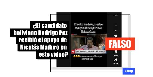 Imagen Elecciones Bolivia 2025 Publicado el 29/08/2025 El discurso de Maduro sobre el bicentenario de Bolivia circula falsamente ligado al candidato Paz
