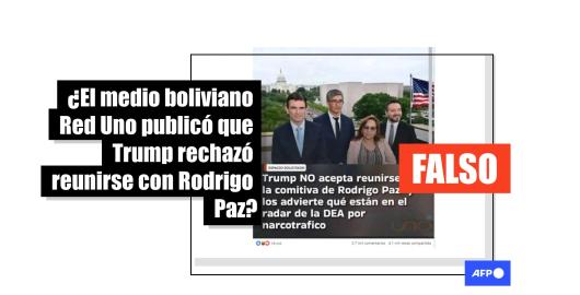 Imagen Elecciones Bolivia 2025 Publicado el 26/09/2025 Es un montaje la placa de Red Uno de Bolivia informando que Trump rechazó reunirse con Rodrigo Paz