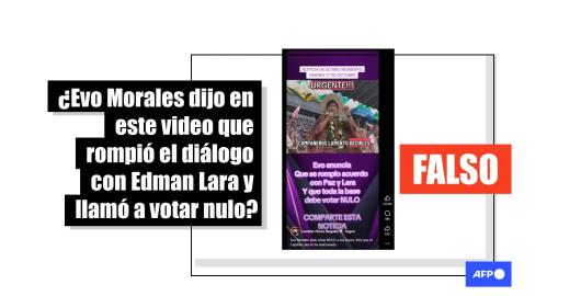 Imagen Elecciones Bolivia 2025 Publicado el 22/10/2025 Un video en el que Evo Morales dice romper su alianza con Edman Lara es un montaje