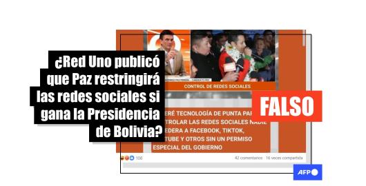 Imagen Elecciones Bolivia 2025 Publicado el 16/10/2025 Es falsa la placa de Red Uno con una supuesta frase de Paz sobre las redes sociales en Bolivia