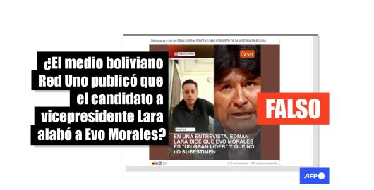 Imagen Elecciones Bolivia 2025 Publicado el 08/10/2025 Es falso que Red Uno de Bolivia informó que el candidato Lara llamó “gran líder” a Evo Morales