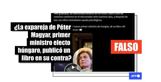 Imagen Elecciones Hungría 2026 Publicado el 17/04/2026 Es falso que la exesposa del húngaro Péter Magyar publicó un libro acusándolo de abusos