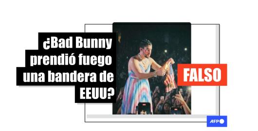 Imagen Inteligencia Artificial Publicado el 12/02/2026 Una foto de Bad Bunny quemando la bandera de EEUU antes del Super Bowl fue creada con IA