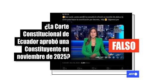 Imagen Publicado el 28/11/2025 Un video muestra la autorización de un referendo en Ecuador, no la aprobación de una Constituyente