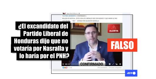 Imagen Publicado el 28/11/2025 Es un montaje el video de un excandidato hondureño del PLH que asegura no votar a Nasralla en 2025