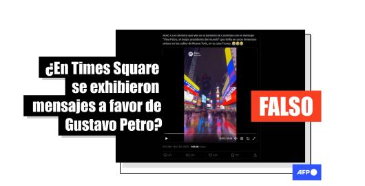 Imagen Inteligencia Artificial Publicado el 04/12/2025 Un video de Times Square con avisos a favor del colombiano Gustavo Petro fue creado con IA