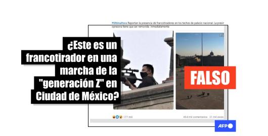 Imagen Publicado el 20/11/2025 Foto de personal antidrones en 2021 es confundido por francotirador en una marcha de 2025 en México