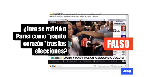 Imagen Elecciones Chile 2025 Publicado el 18/11/2025 La chilena Jeannette Jara no usó la expresión “papito corazón” para referirse a otro candidato