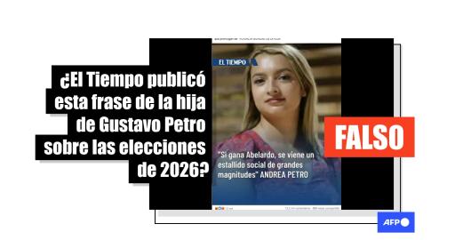 Imagen Elecciones Colombia 2026 Publicado el 11/02/2026 Es falsa una placa de El Tiempo con una “amenaza” de Andrea Petro sobre el candidato De la Espriella